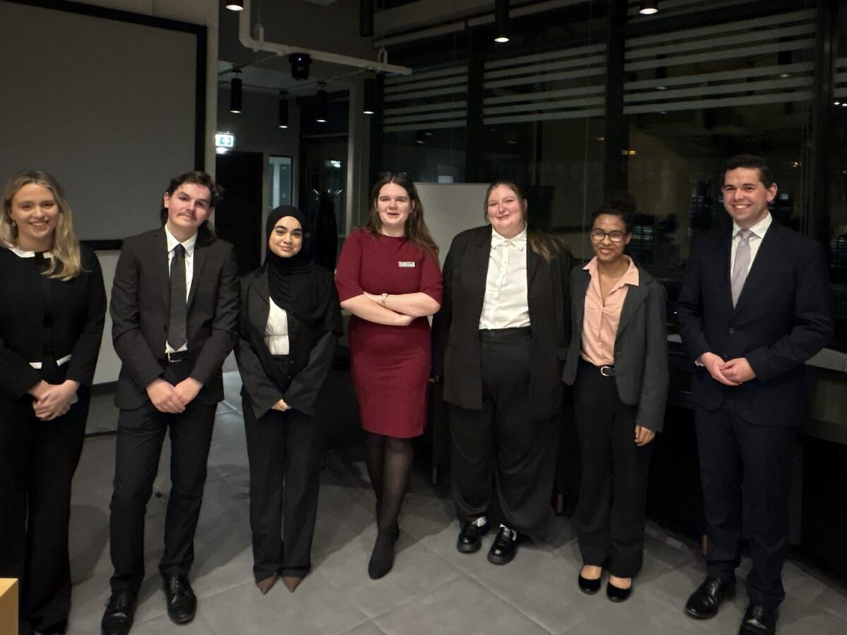 Last night Imogen Ryan, far left, and Rhys Tanner, far right, judged the University Of Plymouth’s Law Society Debate Final.
